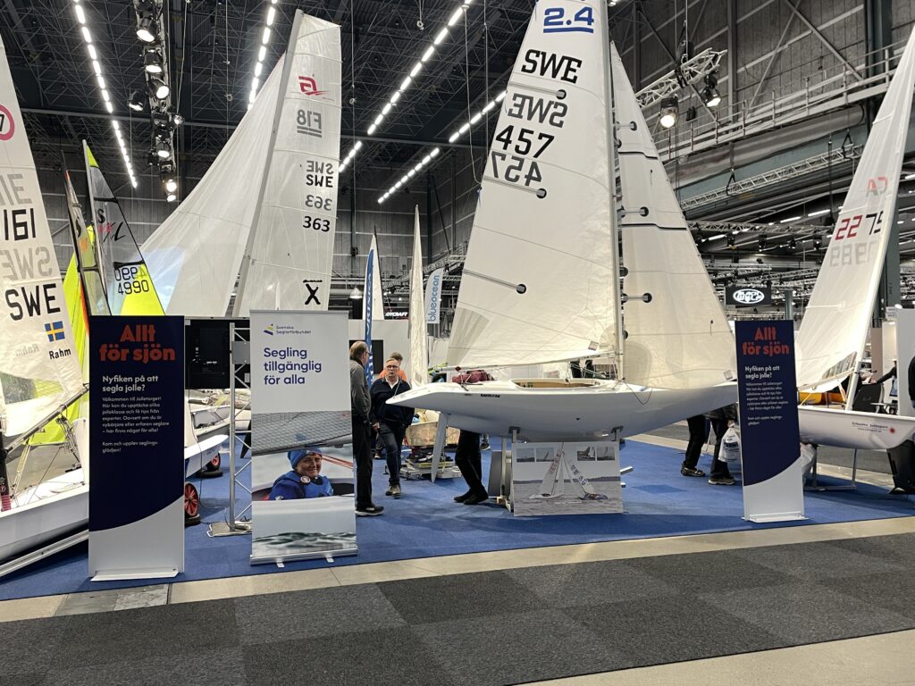 2.4mR Förbundet deltog på båtmässan Allt för Sjön för några veckor sedan. Vi hade en Tvåfyra på Jolletorget, tillsammans med bl.a. Ilca (laser), e-jolle, RS Tera, RS Feva, F-18 och DN-isjakt. Mats hade högglanspolerat Tvåfyran så den såg jättefin ut.