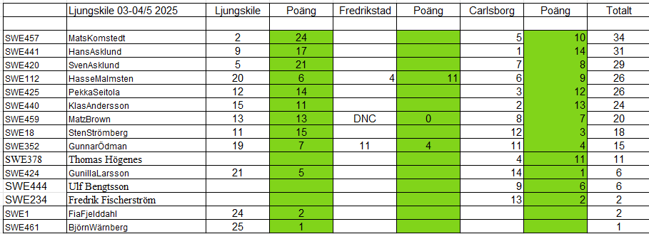 Vi var två från Ljungskile/Sverige för som gav os av till Fredrikstad för att återgälda den stora kontingenten Norska seglare som kom till oss i Ljungskile i månadsskiftet april/maj. Gunnar Ödman och undertecknad som vann Rapport Cupen men fjärdeplatsen.